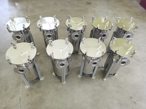 袋式过滤器是一种结构新颖、体积小、操作简便灵活、节能、高效、密闭工作、适用性强的多用途过滤设备。袋式过滤器是一种压力式过滤装置,主要由过滤筒体、过滤筒盖、快开机构、不锈钢滤篮等部件组成。过滤器内部由金属网篮支撑滤袋,液体由过滤器外壳的旁侧入口流进滤袋,经滤袋过滤后从出口流出,杂质被拦截在滤袋中。达到精密过滤,固液体分离之功效。